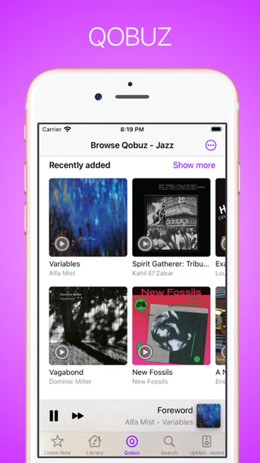 • Browse and play the entire Qobuz library (BubbleUPnP and upmpdcli only, requires a separate subscription to Qobuz)