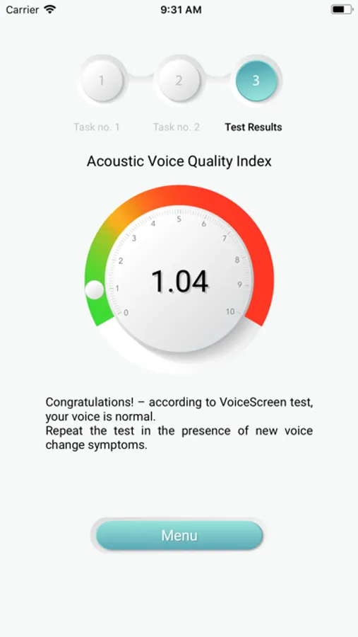The VoiceScreen app is not a medical device or diagnostics tool. The VoiceScreen app recommendations are not to be taken as a substitute for professional medical advice or diagnosis. If you are concerned with the quality of your voice, please seek professional advice from your doctor.