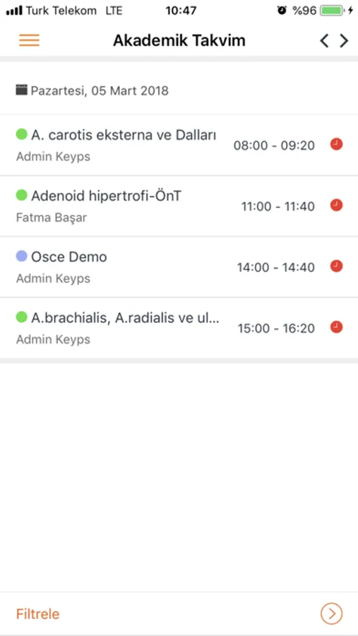 Uygulama takvim ve yoklama modüllerini barındırmaktadır.