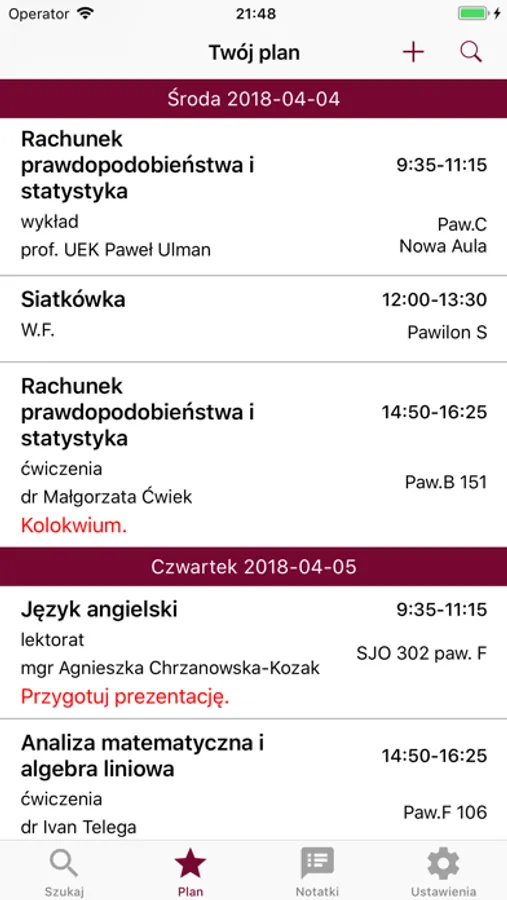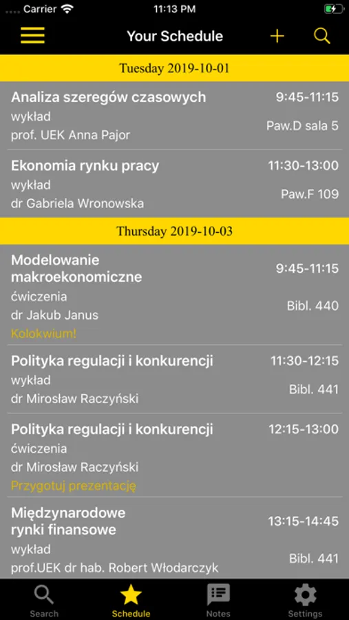 • Customized notes and lessons - You can add lessons and notes even if they are no connected with University.