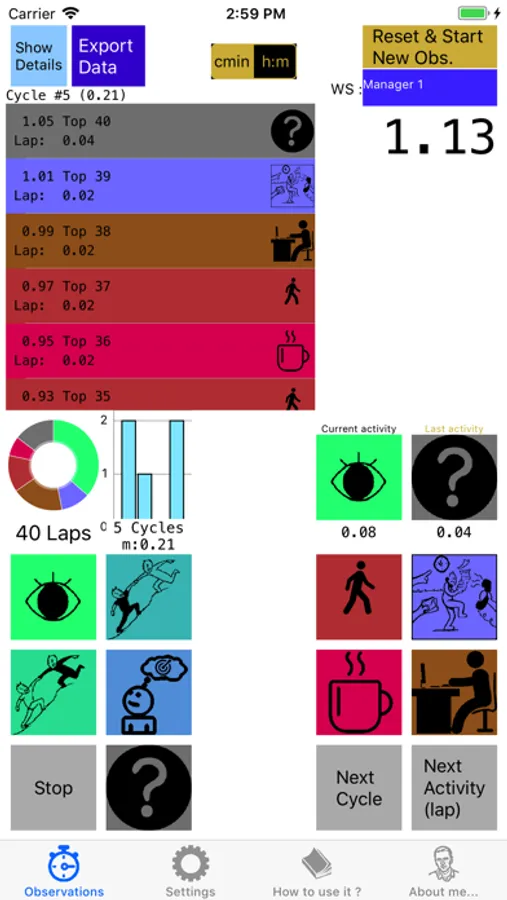 Simultaneously time and indicate the type of activity that is done for an easier exploitation.