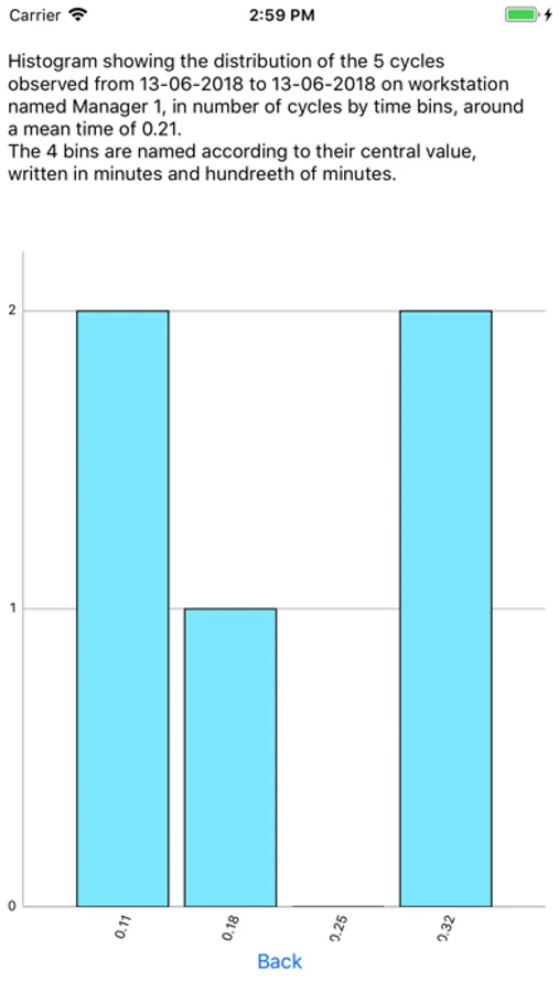 Use the "cycle" feature to quickly get the mean time for each step of a cycle, and analyse the mean cycle time and the dispersion of cycle time.