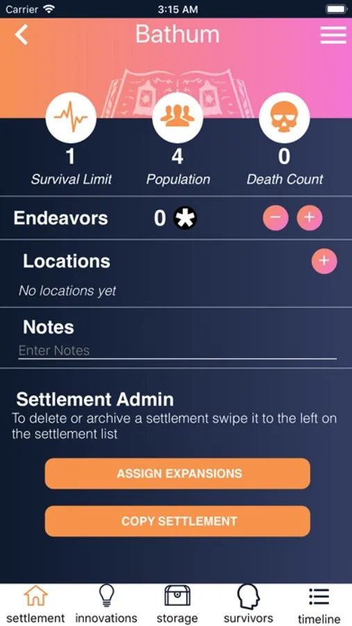 A native settlement management app for Kingdom Death: Monster.
