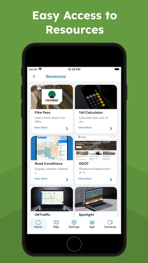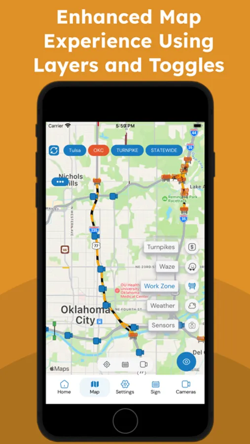 This app gives you easy access to the Oklahoma Intelligent Transportation Systems (ITS) devices and resources like the OTA PIKEPASS website. The Drive Oklahoma app includes traffic and road condition information for Oklahoma roadways across the state.