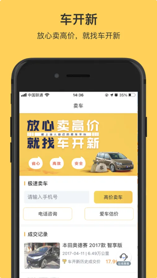 “车开新二手车帮卖”,只为个人车主卖车。全国买家高价购买,帮您实现一站式比价,把车卖给出价更高的人,3分钟极速付款,绝不议价。通过线上预约门店交易,高效安全有保障,为您解决卖车难卖车烦的问题。