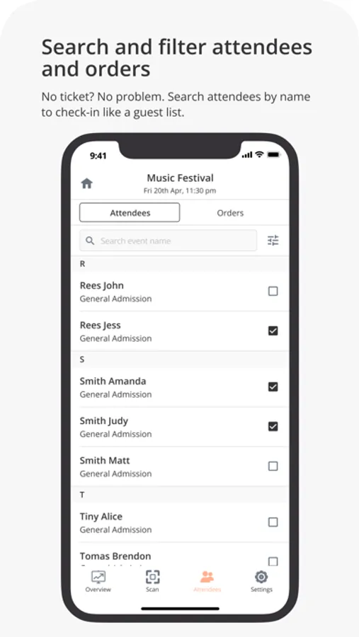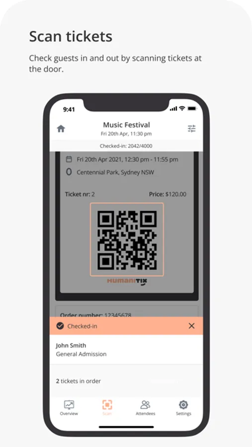 Humanitix's mobile scanning app provides an easy and intuitive app for hosts to scan tickets and check in ticket holders at the door. The app can be used simultaneously by several hosts at the same time to scan tickets at an event, making entry a seamless and efficient process.