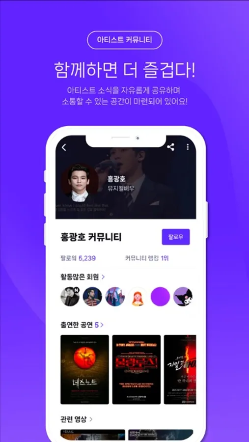 공연/아티스트 커뮤니티에서 함께 이야기 나눠보세요! 같은 취향을 가진 팬들과 함께라면, 공연을 더욱 다양하게 즐길 수 있습니다.