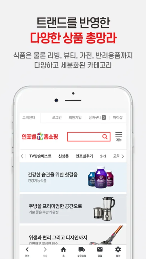 실생활과 밀접한 라이프스타일 상품의 모든 것! 식품부터 가전까지 합리적인 가격에 만날 수 있는 인포벨TV홈쇼핑 모바일앱을 소개합니다~!