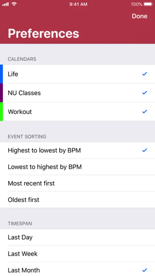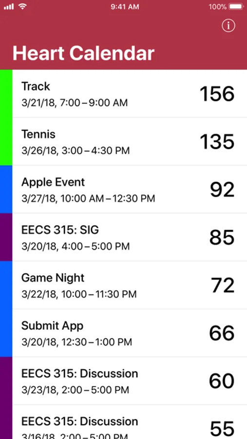 View your average heart rate for each of your calendar events. Heart Calendar uses heart rate data from the Health app.