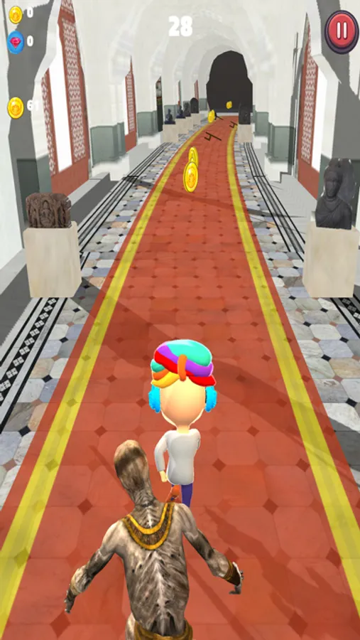 In this game you have to save the Techysa/ Techybaisa from mummy running behind in the galleries of Albert Hall. To do this player has to control the movement of Techysa/Techybaisa by swiping left/right/up/down on the screens. Player has to use his/her mind with the increasing game difficulty. The game consists of infinite running.
