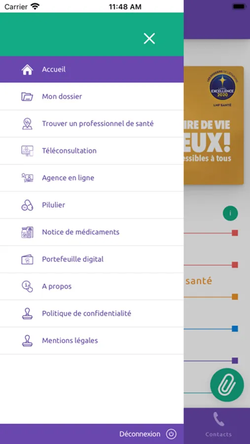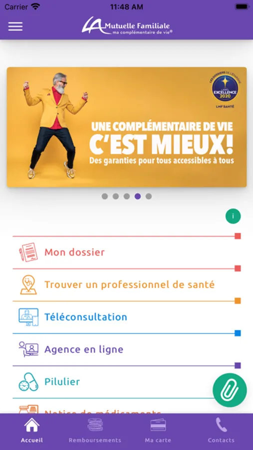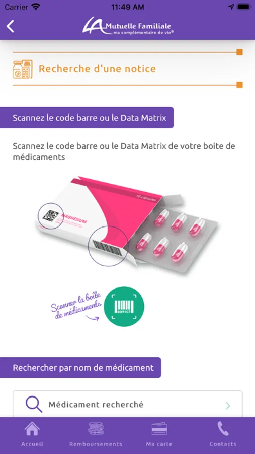 - Votre carte d’adhérent dématérialisée et son datamatrix pour pouvoir justifier à tout moment de vos droits auprès des professionnels et établissements de santé