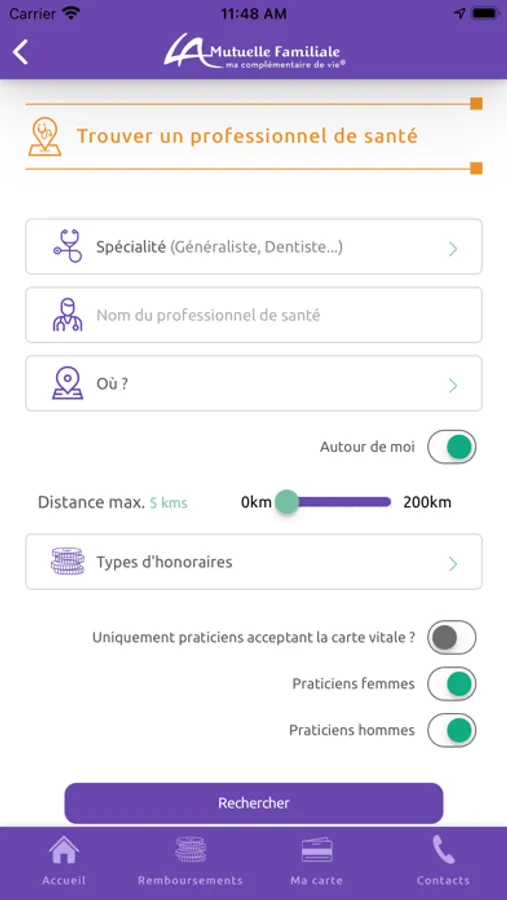 - Le suivi de vos remboursements avec la possibilité de télécharger vos décomptes et de réaliser des recherches selon différents critères (date de soins, bénéficiaire, type d’actes remboursés …)