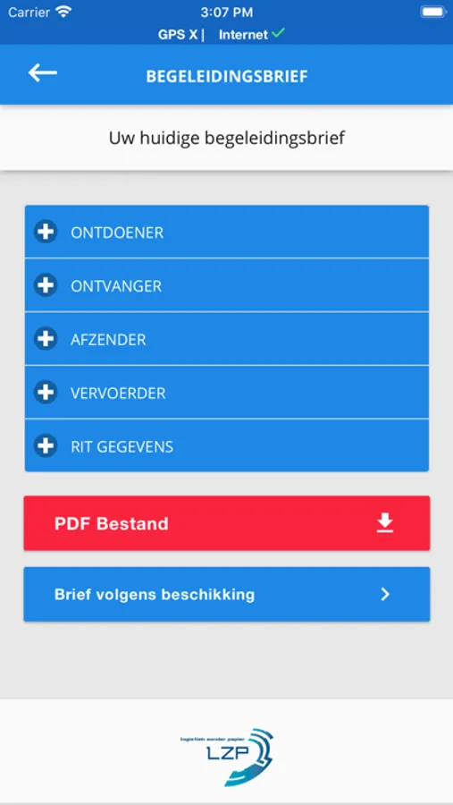 De LZP App is dé applicatie voor digitale transport- en begeleidingsbrieven. Deze applicatie is gericht op de bestuurder van een vervoersmiddel, hierbij te denken aan een vrachtwagen, tractor, dumper, schip en/of trein. Door middel van een aantal simpele knoppen kan de gebruiker de juiste documenten selecteren en vervolgens juridisch afgedekt het transport uitvoeren. Uiteraard kan het geselecteerde document ook getoond worden. Voor meer informatie kunt u de website van LZP bezoeken.