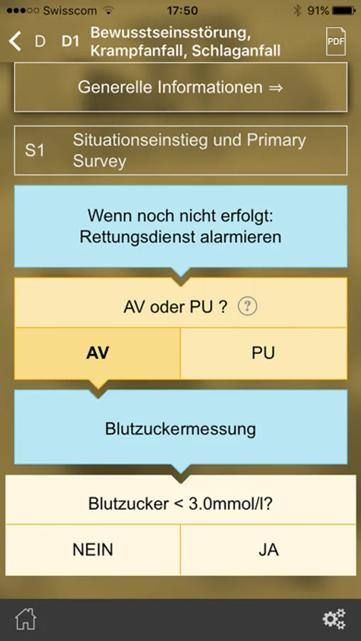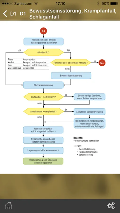 Wichtig: Die vorliegenden Algorithmen definieren rettungsdienstliche Arbeitsprozesse. Sie ersetzen in keiner Art und Weise eine spezifische Ausbildung. Ihre Anwendung erfordert Sachkenntnis, Erfahrung und situative Flexibilität. Der Einsatz der genannten Versorgungsmassnahmen setzt explizit deren Beherrschung durch den Anwender voraus und darf nicht zu einem Ersatz oder Verzögerung der Alarmierung des Rettungsdienstes führen.
