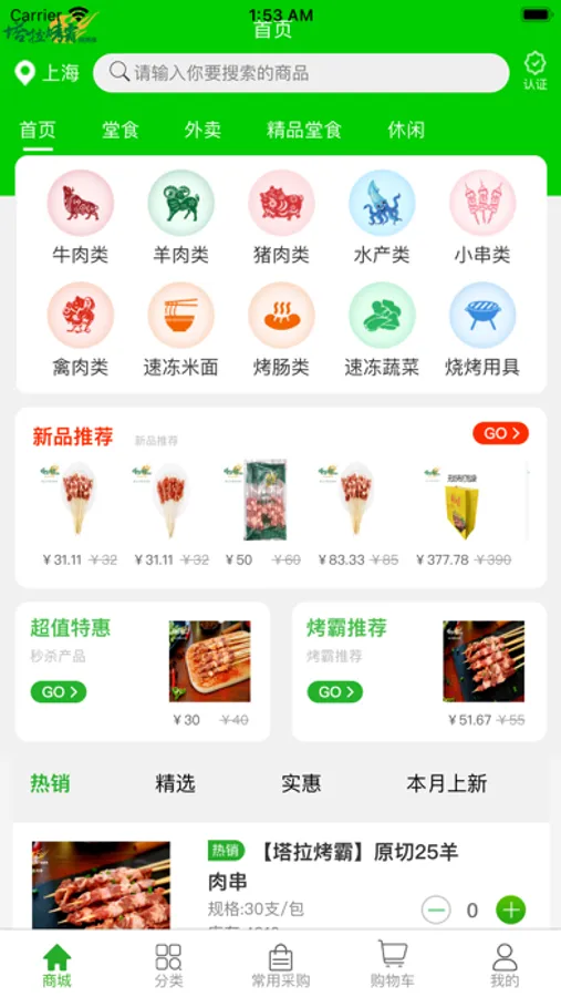 烧烤食材交易平台,专注于烧烤半成品食材、冷冻肉品的垂直B2B移动交易商城,整合上游品牌/生产厂家资源,为以中式烧烤为主的客户群体提供食材安全、品类丰富、交易便利、配送高效的优质服务。