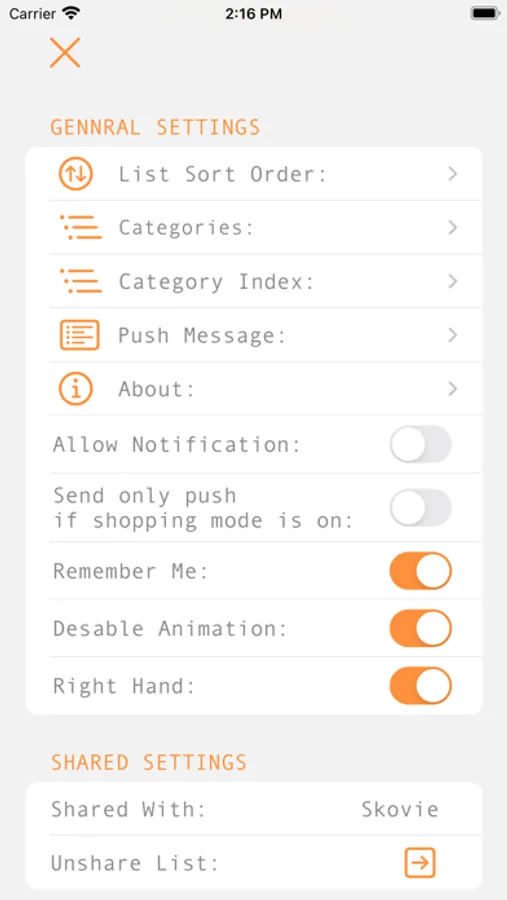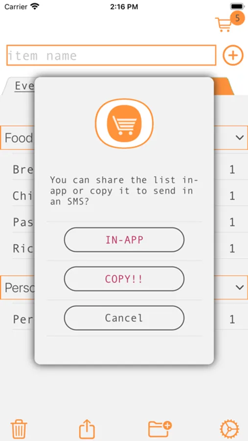 Create your list, and share it in-app with your significant other and get push notification when your shared list is updated, or send the list as sms to your kids.