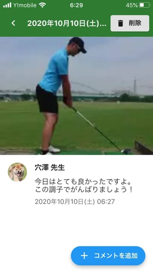 レッスン履歴・スイングチェック・ドリルを見たり、コーチからコメントを受け取る事ができます。