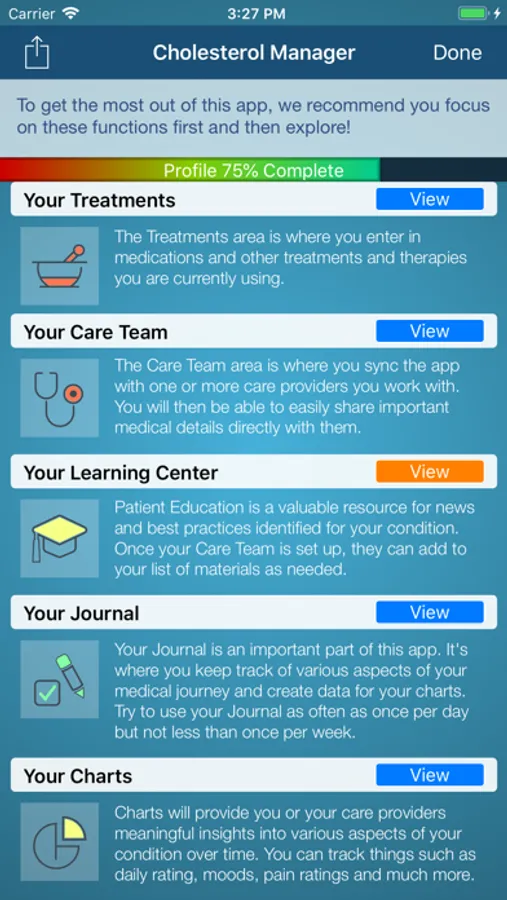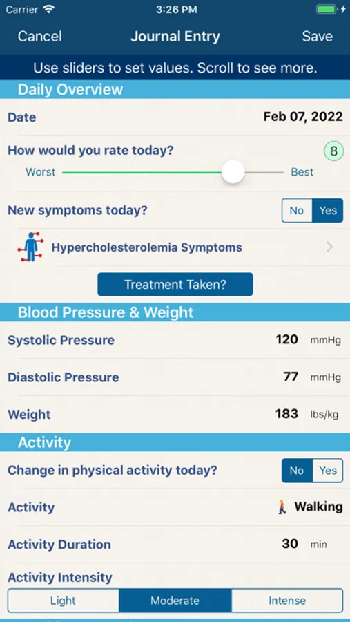 When you are living with High Cholesterol, the Cholesterol Manager can help you manage the symptoms that affect you every day. Studies show that people with chronic diseases can positively affect their lives by using @Point of Care apps to track pain, medications, and more—giving a sense of control over their conditions.