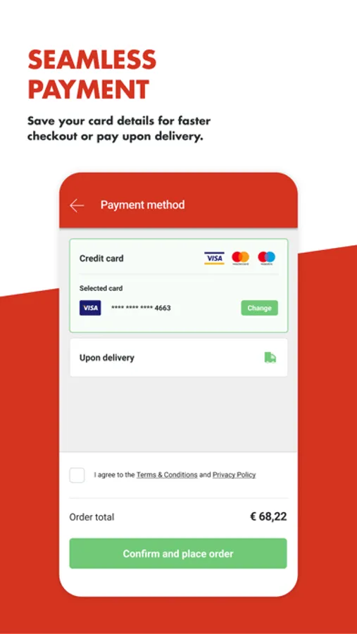 Mega Image App offers the possibility of online shopping wherever you are. You can choose to have the delivery to your home address in 2 hours or next day. Now you have access to your loyalty card and all the Connect benefits. We are waiting you with a wide assortment of products and special prices. Each order is carefully prepared for you to enjoy the freshness of our products. Shop quick and easy with Mega Image App.