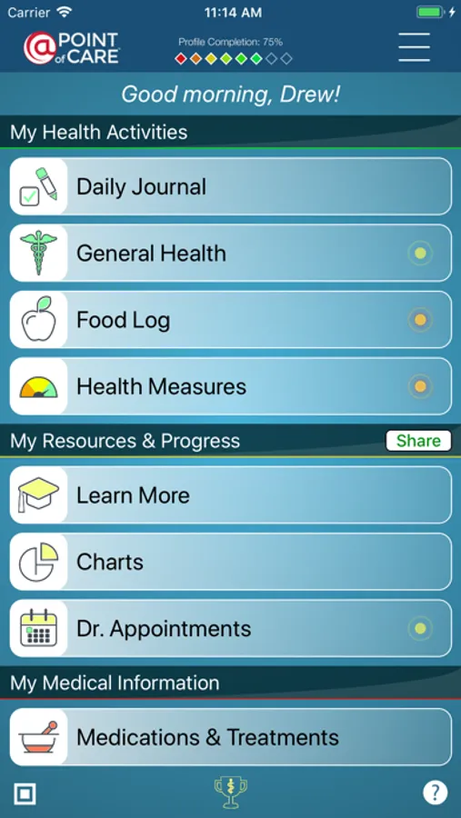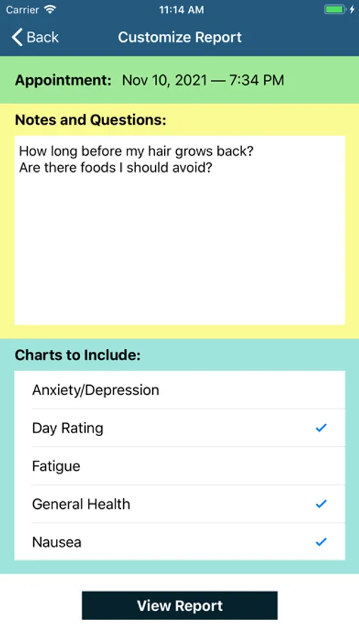 For many, the best part of using Head/Neck Cancer Manager, is seeing moods, pain, medications—even how often they journal—in colorful pie charts. When your health journey is presented this way, it is easier to spot trends, notice strengths, and identify areas of concern.