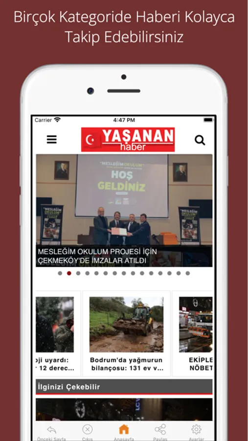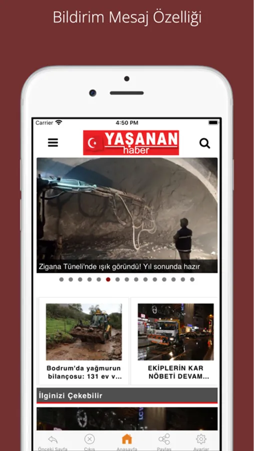 Uygulamadaki bildirim mesaj özelliği ile son dakika haberleri cebinizde.
