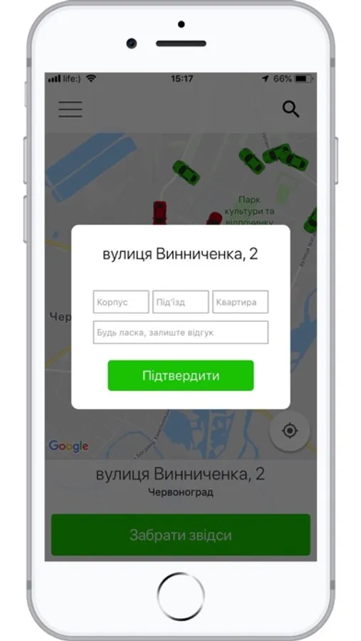 - возможность ручного ввода адреса (в случае отсутствия GPS).