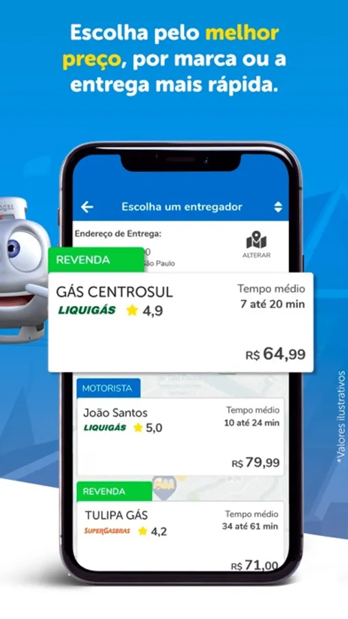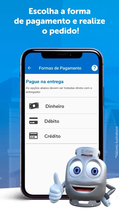 desejada e o meio de pagamento e pronto! Receba seu gás em poucos minutos!