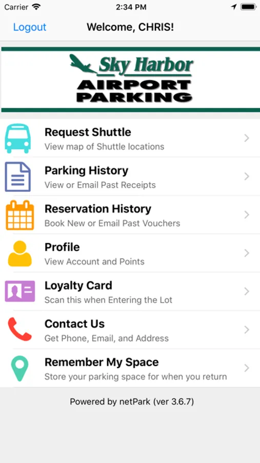 Customer portal for access to Skyharbor Airport Parking located at Phoenix International Airport in Phoenix, AZ, providing: