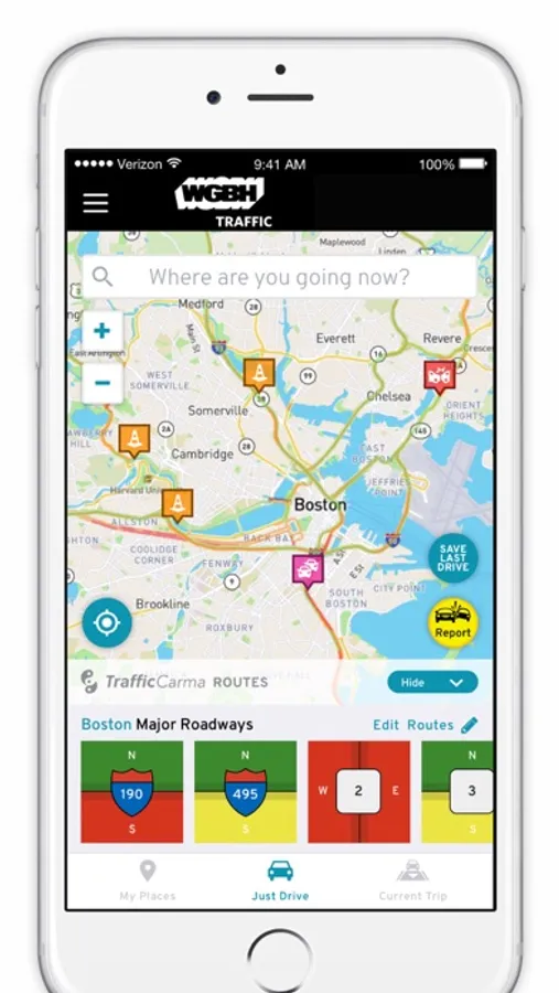 From WGBH Boston, the WGBH Traffic app is the most accurate and convenient way to get to the places you drive to the most, in and around the Greater Boston area. WGBH Traffic lets you create personalized routes for your daily commute; from home to work, to the airport, school, the gym and more. You know where you’re going; WGBH Traffic gets you there quickly! Follow the traffic patterns on 128, The Expressway, The Mass Pike and all Greater Boston roads and highways. Look for the quickest ways to get to Cape Cod, the North Shore, New Hampshire and The Berkshires, Fenway Park, Gillette Stadium and the Waterfront.
