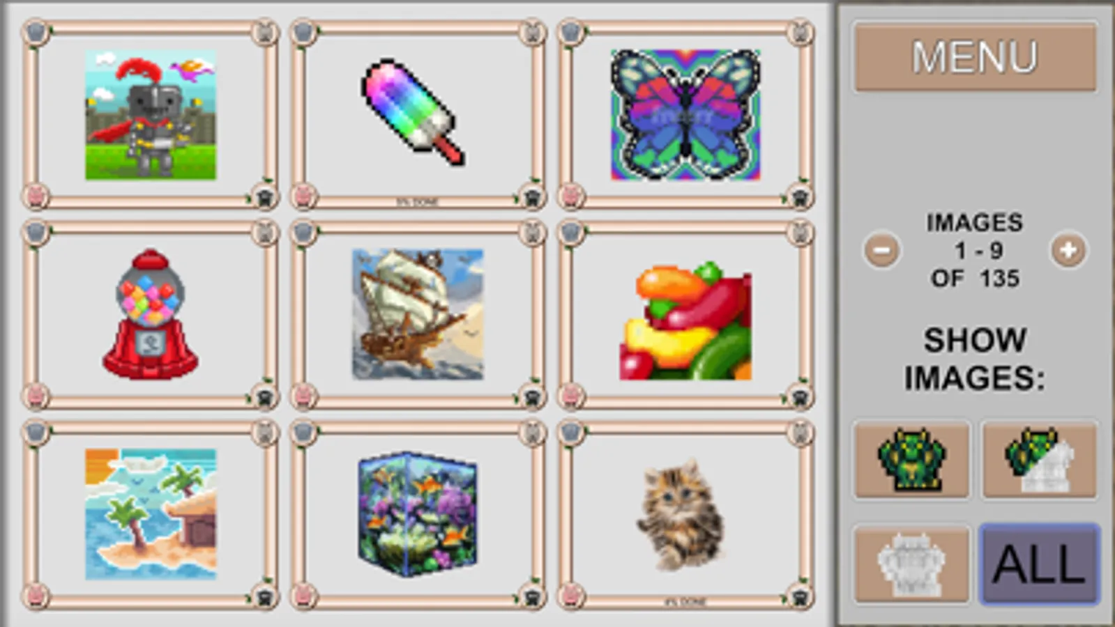 Kid-friendly coloring-in app with no costly subscriptions or ads. Free to try several pictures, then purchase for a modest one-time price to unlock all images as well as the restart feature.