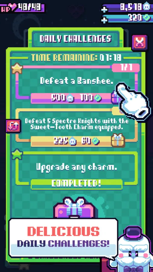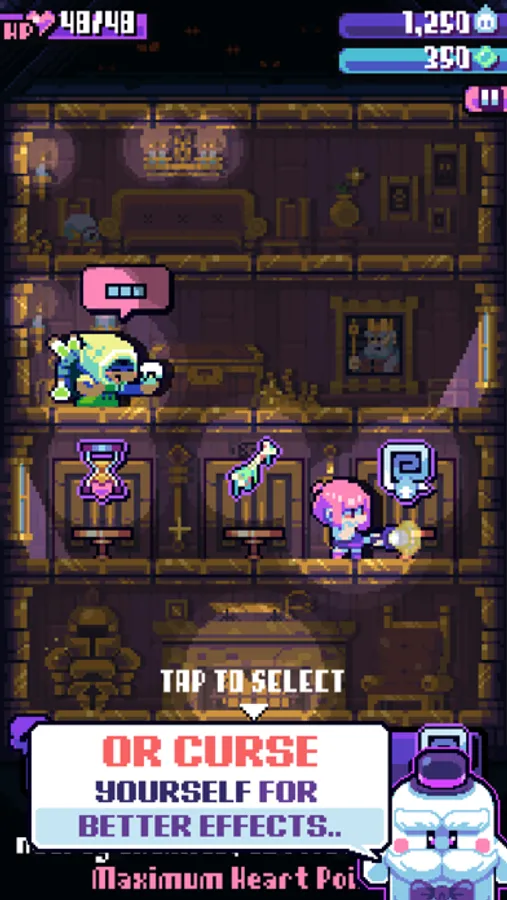 - Upon completing a stage, players can choose from a randomized set of candies and curses that will provide permanent power bonuses for the remainder of that run. Will you restore all of your hearts hoping to last longer before an untimely demise? Or will you sacrifice defense for ultimate power? The choice is yours!