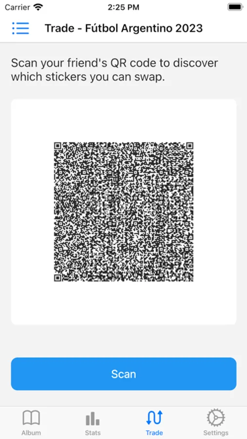 - Trade: use the QR code to find out which stickers you can trade with your friends.