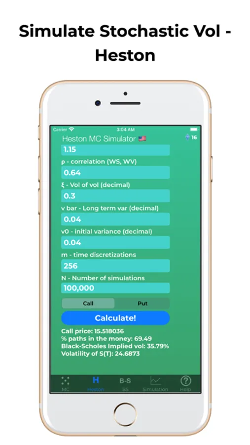 - Monte Carlo simulator for European options with stochastic vol (Heston model).