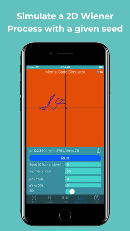 - Simulation tab lets you visualize Brownian Motion with drift. (2D or vs time).