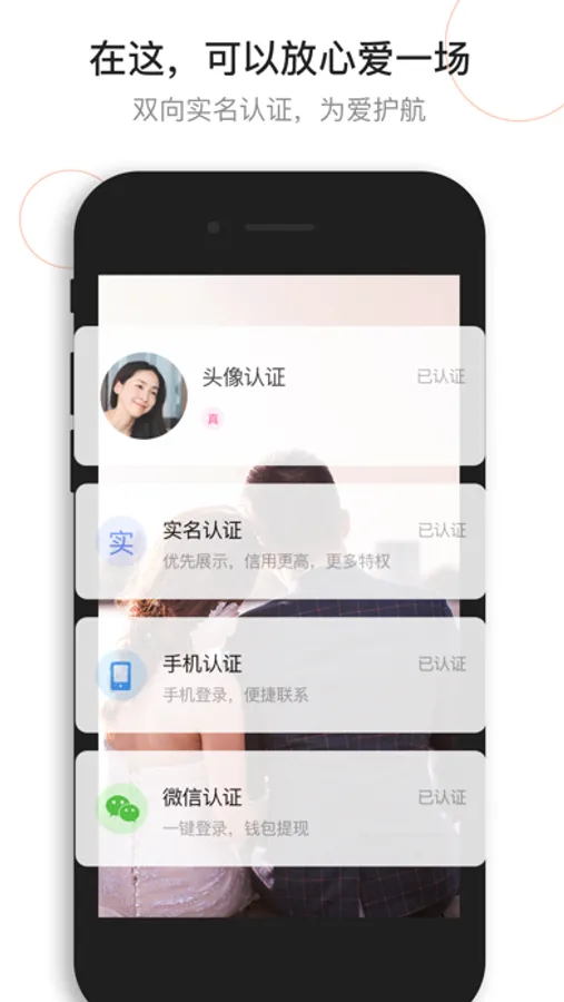 通过实名认证,保证信息真实度,避免无效征婚
