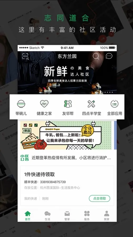 “回来啦社区”APP是绿城东方业主的社交与生活服务平台。