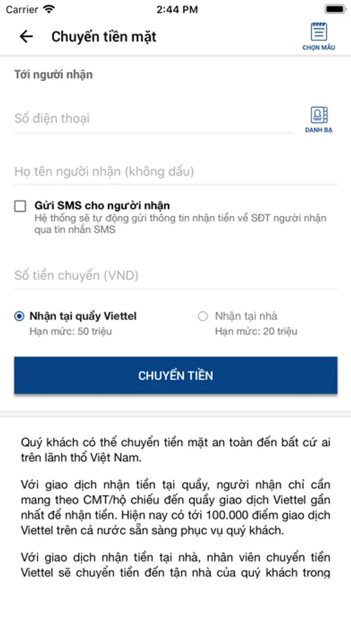 + Chuyển tiền mặt chỉ cần số điện thoại, giao tiền tận tay trong 02 giờ