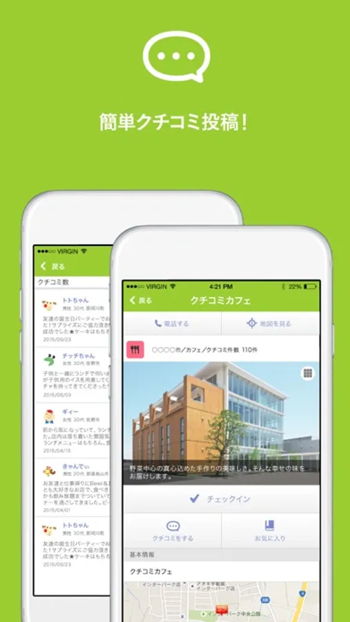 素敵な場所、おいしいグルメなど、楽しかった思い出をおすすめクチコミとして投稿できます。