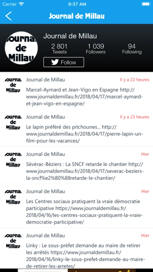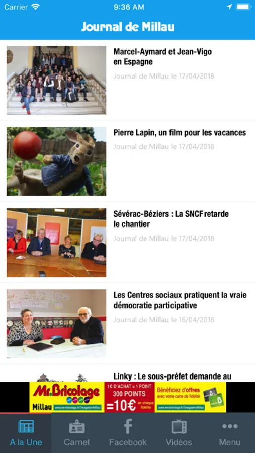 Le Journal de Millau, hebdomadaire d’actualité de la région de Millau (Aveyron), vous propose son application d'actualité. Vous y trouverez toute l'information millavoise mais aussi des idées loisirs et les résultats sportifs sélectionnés par la rédaction.