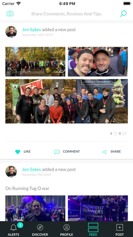 • Share photos, feedback and update on each individual race, joining a community discussion