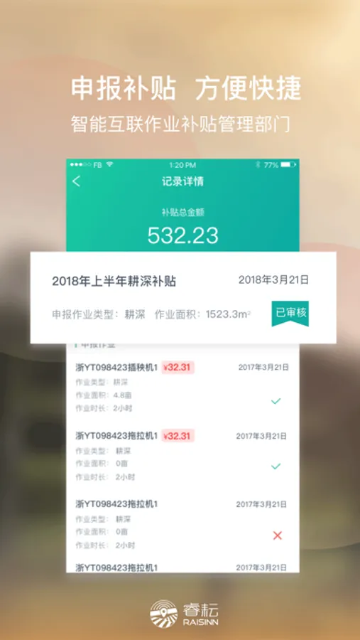 本APP是睿耘智慧农业云平台配套移动应用之一。面向农户,农机手,合作社,农场,农业公司。