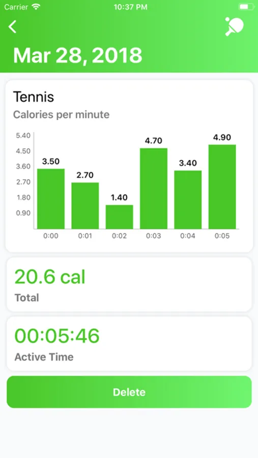 Track your calories, save results to your history of Activities and then view detailed summary per minute! App can count your calories during the next activities: