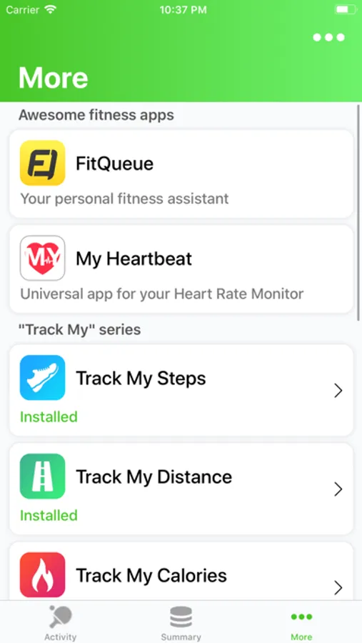 View the list of all existing “Track My“ series apps. Easily navigate between them or install them directly from the App Store. Also you will few great suggestions how to improve your fitness experience.