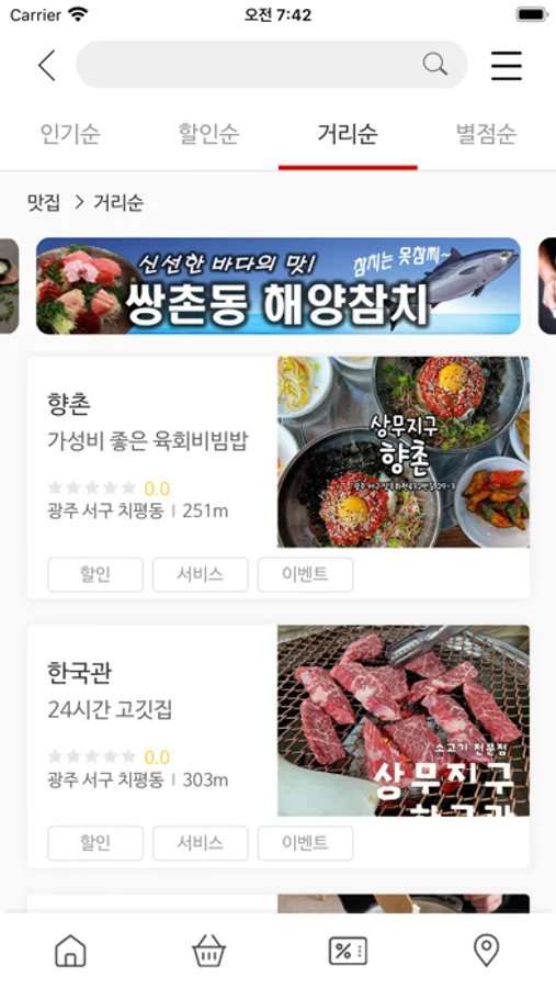 나랑 가까운 곳에 있는 핫한 가게와 할인혜택을 실시간으로 알려드려요