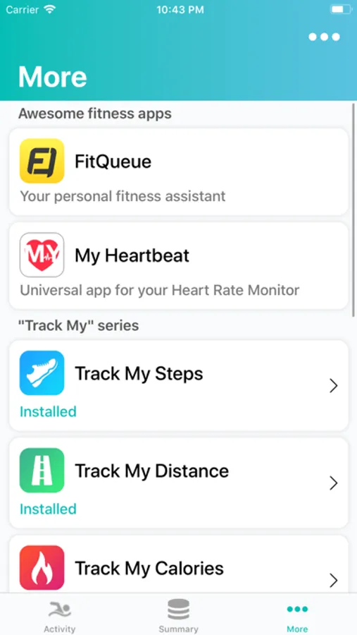 View the list of all existing “Track My“ series apps. Easily navigate between them or install them directly from the App Store. Also you will few great suggestions how to improve your fitness experience.