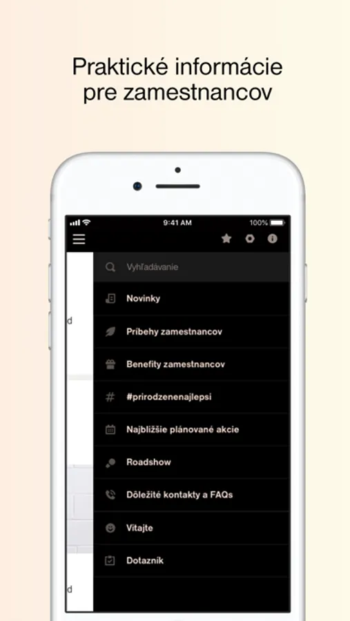 Po prihlásení do aplikácie získate prístup k rozšírenému obsahu, interaktívnym funkciám, zamestnaneckým výhodám, pozvánkam na podujatia alebo nepretržite aktualizovanému obsahu z interného prostredia.