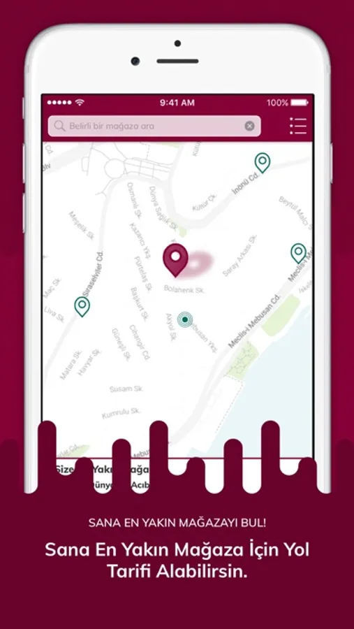 · Yol Tarifi Al özelliği ile mağazalarımıza ulaşmak artık çok kolay! Semt, Cadde, Sokak gibi bilgilerle sana en yakın mağazaları aratabilir, ilgili mağazanın menüsü, açık oturma alanı, otopark ve internet erişimi gibi bilgileri de tek tıkla inceleyebilirsin.