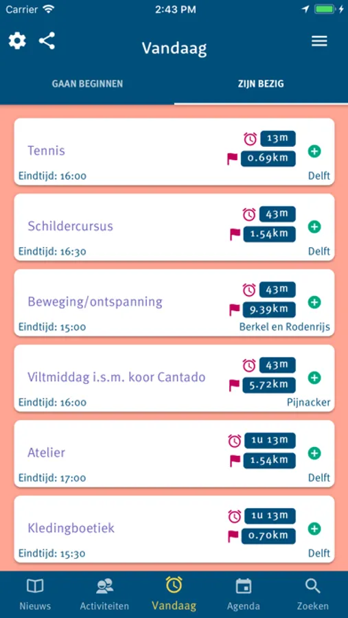 - Een overzicht van activiteiten die vandaag gaan plaatsvinden of al zijn begonnen.
