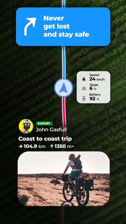 The best app for your cycling, motorbike, and running adventures. Plan your routes, improve your safety outdoor and track all your activities based on the type of outdoor sport activity. Enter the best community for outdoor sports enthusiasts: moto off-road, mountain biking hiking, running, gravel and road biking
