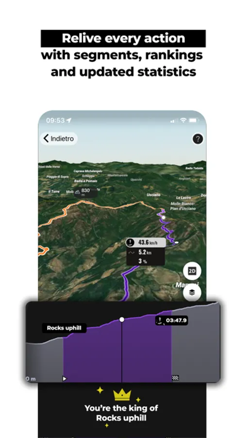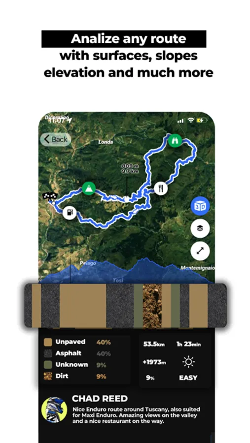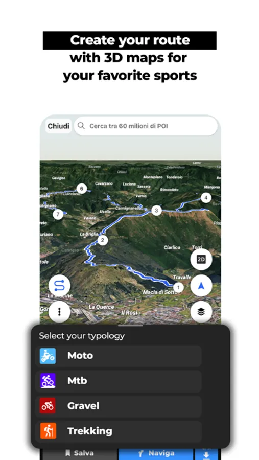 Create your route based on the type of activity: MTB, Enduro, Maxi Enduro, Gravel, Road, we have them all! Plan your adventure with 2D and 3D Maps. Add waypoints and choose between over 60 million Points of Interest, activities and segments to create the perfect route.